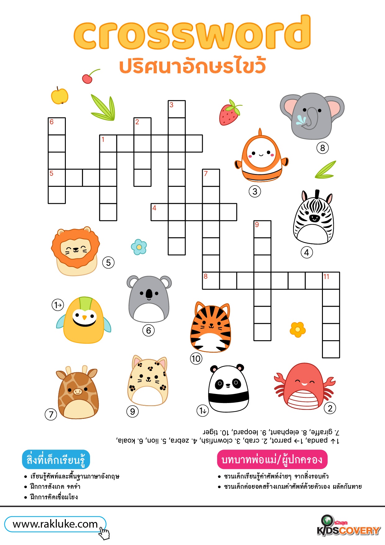 Crossword ปริศนาอักษรไขว้ 2 - ดาวน์โหลดฟรี Learning Sheet