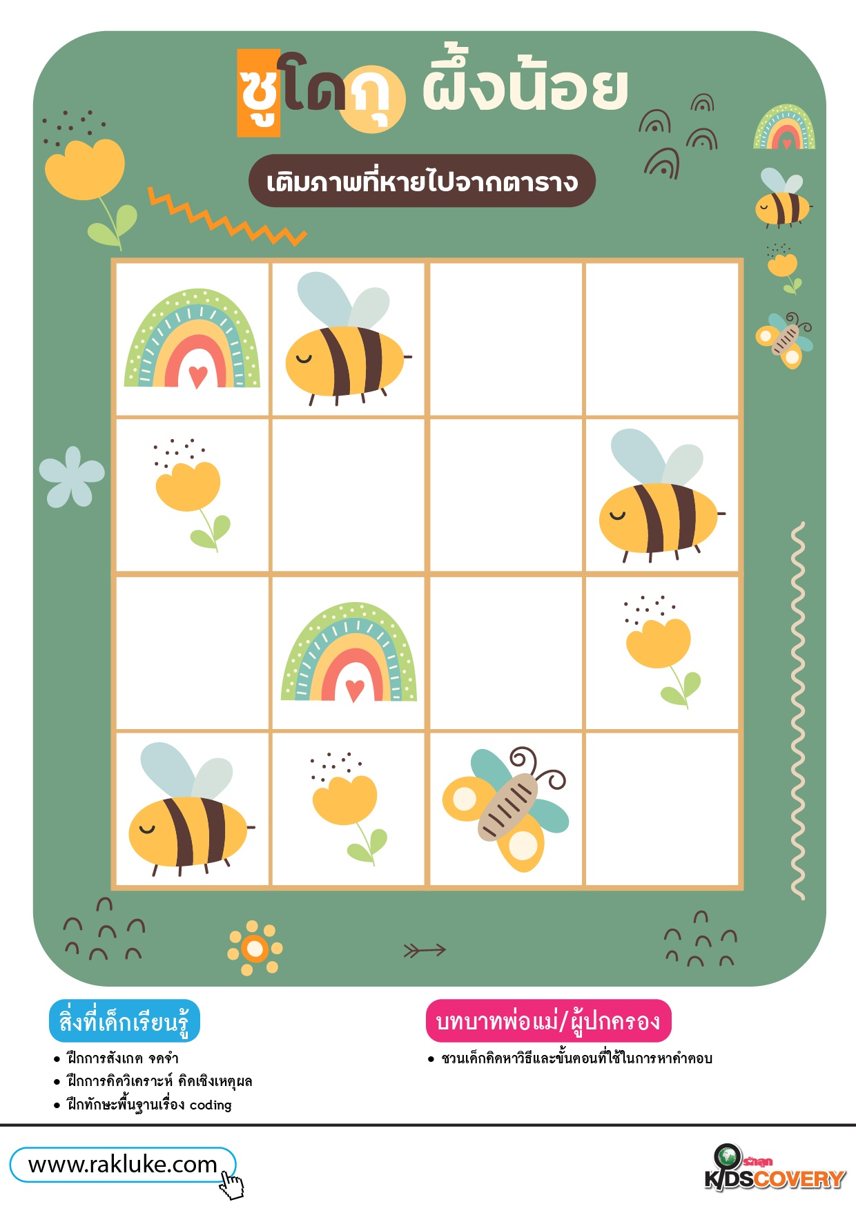 เกมซูโดกุ ผึ้งน้อย - ดาวน์โหลดฟรี Learning Sheet