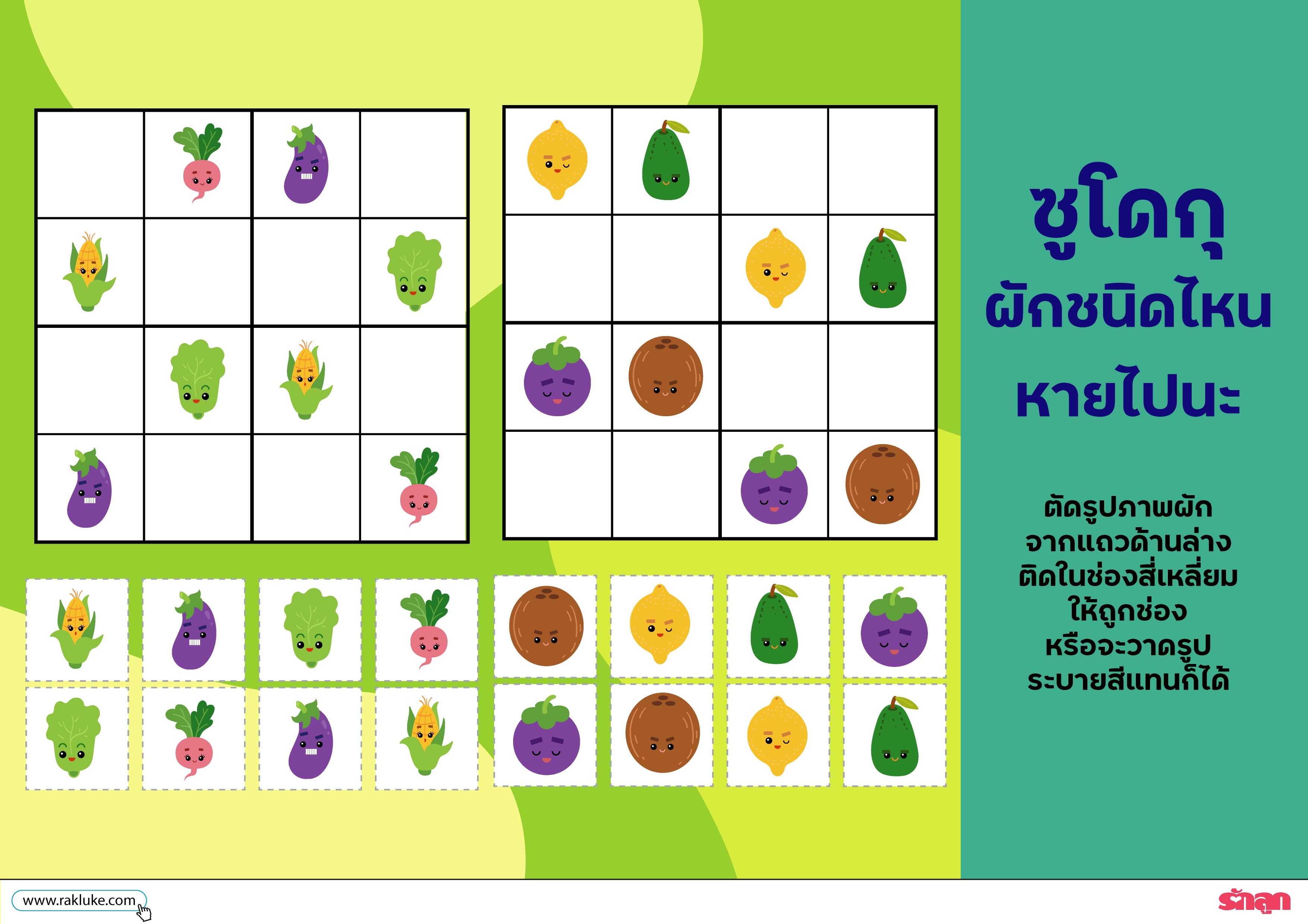ดาวน์โหลด Learning Sheet l ซูโดกุ ผักชนิดไหนหายไปนะ