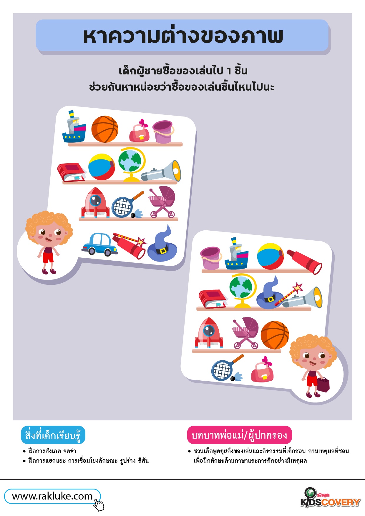 หาความต่างในภาพ หาความต่างของภาพของเล่น - ดาวน์โหลดฟรี Learning Sheet