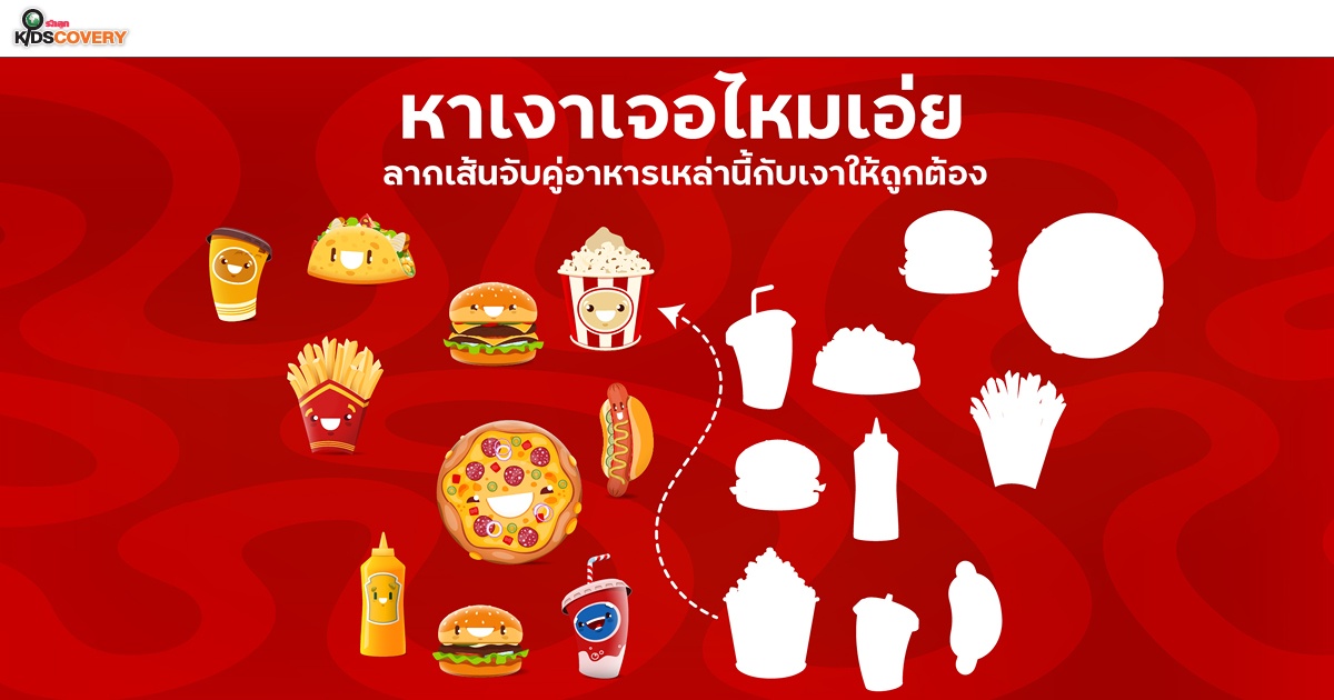 เกมจับคู่เงา รูปทรง ลากเส้นอาหารแสนอร่อย - ดาวน์โหลด Learning Sheet