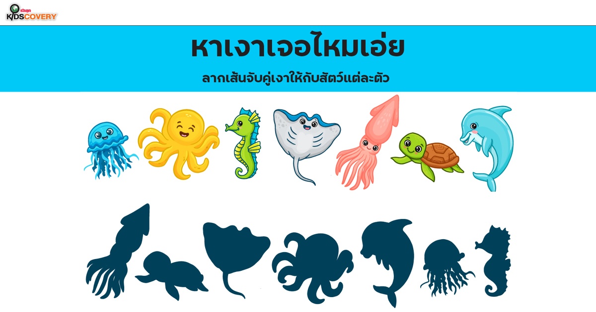 เกมจับคู่เงาสัตว์ทะเล หาเงาเจอกันไหมเอ่ย - ดาวน์โหลด Learning Sheet