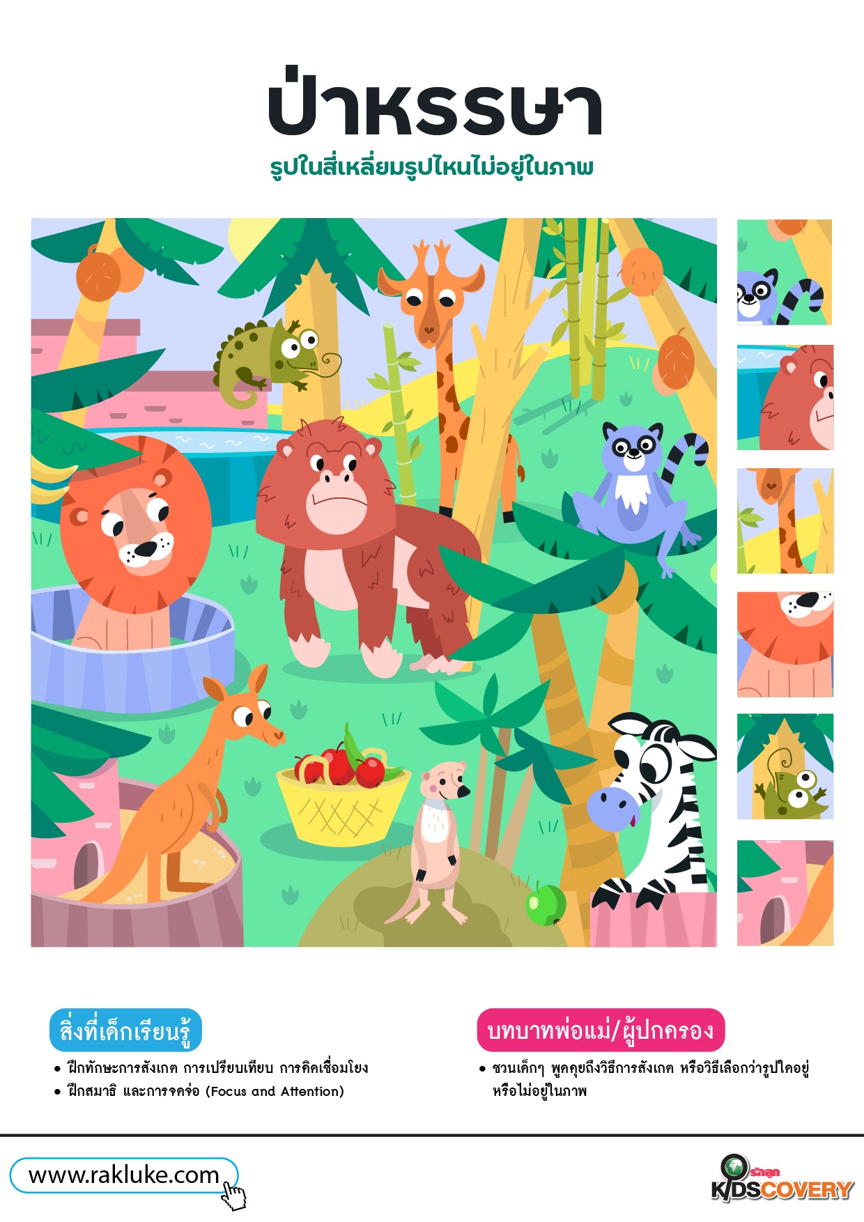 เกมจิ๊กซอว์ป่าหรรษา ช่วยกันต่อภาพหน่อยซิว่าควรอยู่ตรงไหน - ดาวน์โหลด Learning Sheet