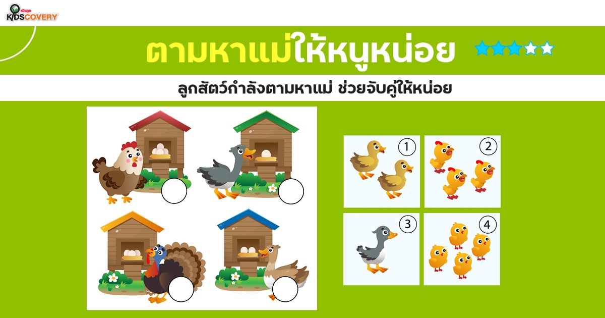 เกมจับคู่ภาพ ตามหาแม่ให้หนูหน่อย - ดาวน์โหลดฟรี Learning Sheet