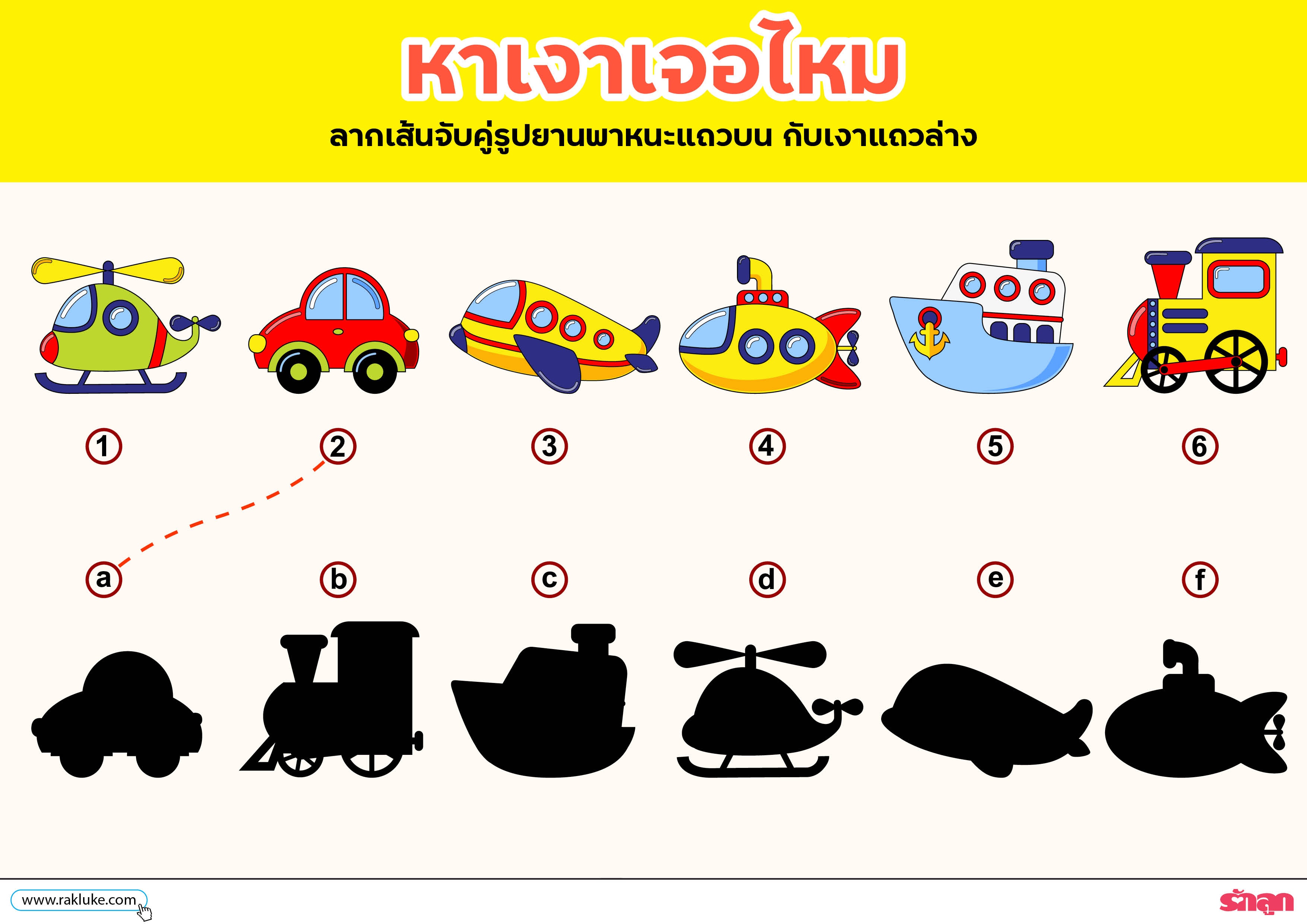 - ลากเส้นจับคู่รูปยานพาหนะแถวบน กับเงาแถวล่าง