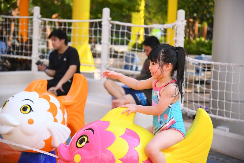 6. Toys Island (ทอยส์ ไอส์แลนด์) โซนของเล่นน้ำ เสริมสร้างพัฒนาการด้านต่าง ๆ ของเด็ก ๆ ที่เน้นความปลอดภัยตามมาตรฐานระดับสูงสุดของโลก อาทิ ของเล่นต่อรางน้ำ แกะบล็อคอัญมณี โต๊ะจำลองงานช่าง ห้องครัวจำลอง อุปกรณ์เล่นทราย และเครื่องดนดรีสร้างสีสันความสนุกมากมาย